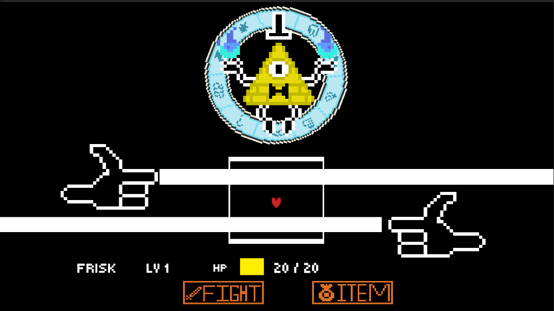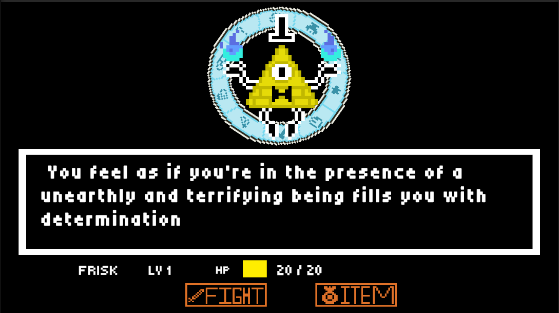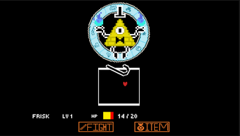 This is a fan made game of Undertale game featuring Bill cipher from gravity falls.